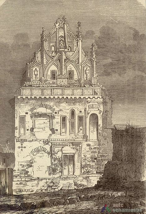 The archaeological research carried out in the environs of the building implies that the building was constructed in the beginning of the 16th century. The plan of the block is rather unusual – there were five large land plots facing square, and a separate Perkūnas house land plot facing the street was formed. The main residential building of Gothic style had two floors and a cellar. A warehouse was constructed next to the residential building and demolished in the 18th century. The research suggests that the warehouse was accessed through the wide staircase directly from the street. The inside spaces of the building are notable for their outstanding details. The open fireplace was reconstructed from the remaining architectural details in this building. It resembles the open fireplaces that were incorporated in the walls in the old feudal palaces. It was used for both heating and cooking purposes.