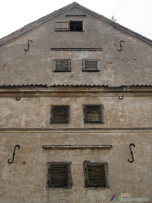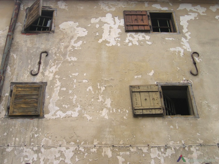 Iki šiol išlikęs medinis pakėlimo mechanizmas. Fasade prie Muziejaus gatvės dvivėriai mediniai vartai prekėms įvežti . Kiemo fasade – dvišlaitis stogelis pakėlimo mechanizmui. Taip pat iš kiemo pusės buvo trys durys vedančios į patalpas, dabar dvi užmūrytos, liko vienerios. Viduje visų aukštų patalpos pertvaromis nesudalintos, jose simetriškai išdėstyta 16 medinių statramsčių.