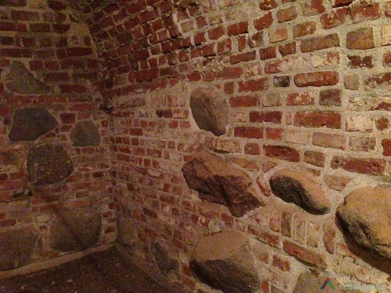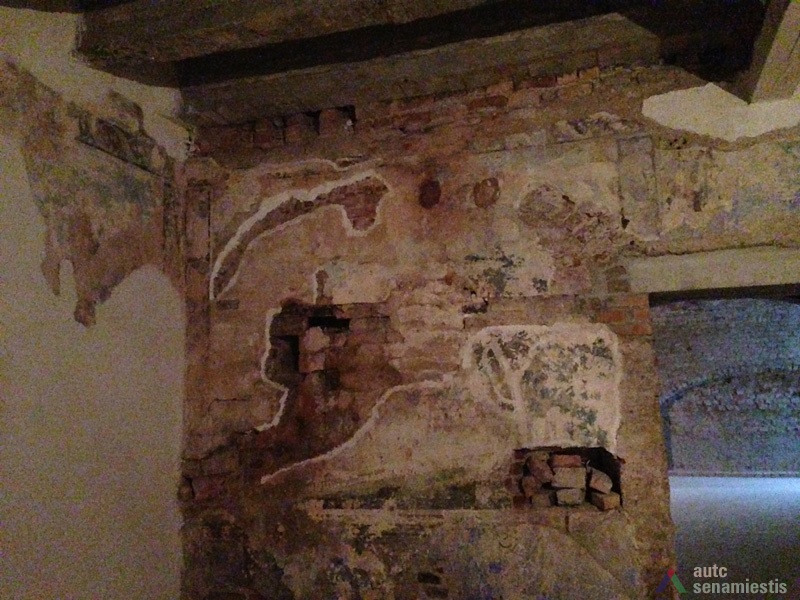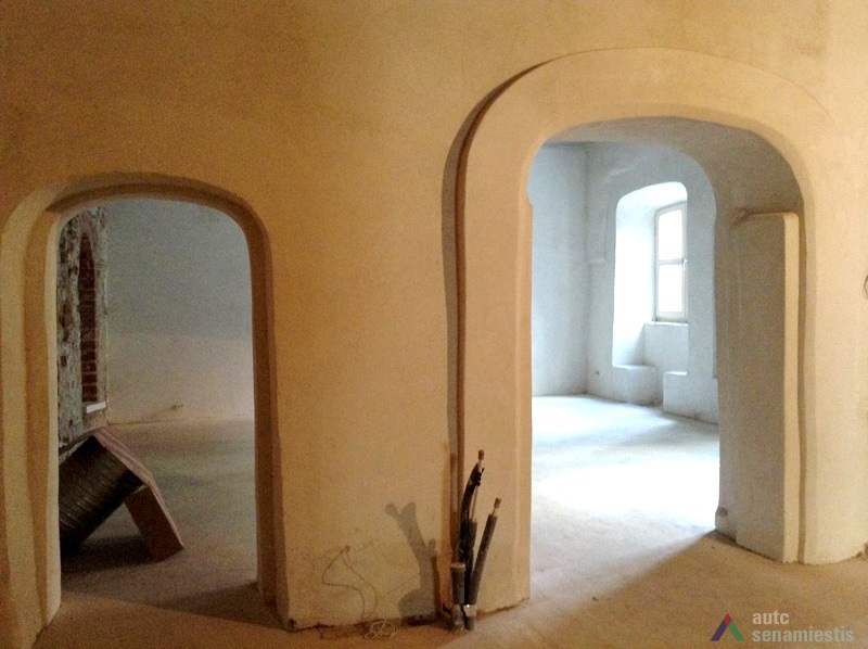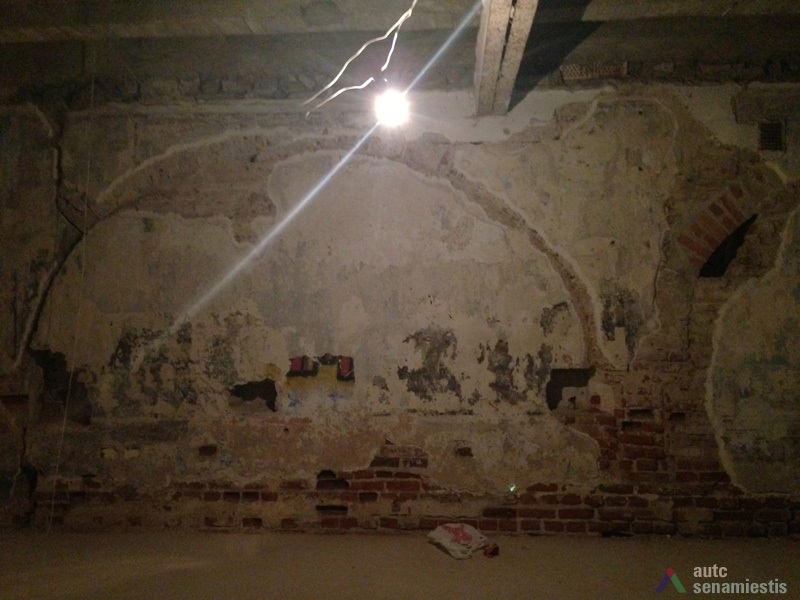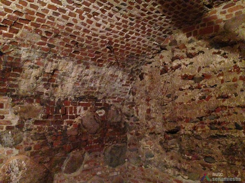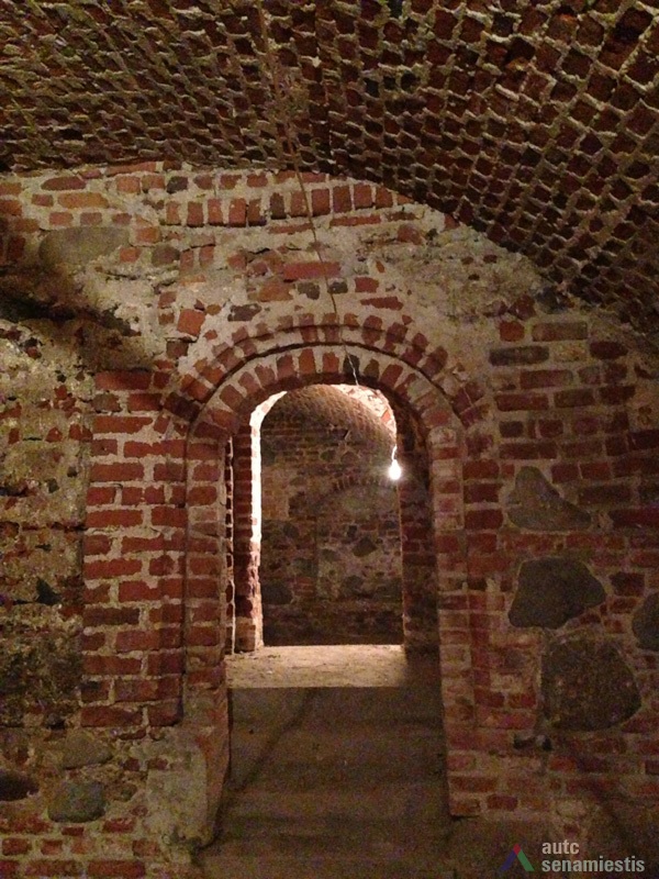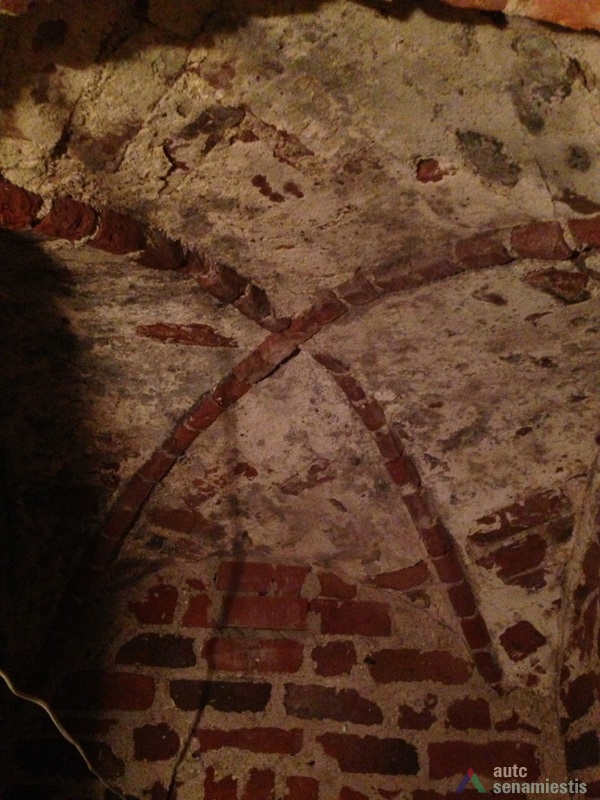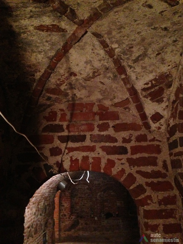 Seniausia pastato dalis yra rūsiai: pirmasis – vakarinėje sklypo dalyje prie Vilniaus gatvės, antrasis – rytinėje sklypo dalyje, nuo Vilniaus gatvės atsitraukęs 15 m. Pirmasis, dengtas medine sijine perdanga, su durimis ir laiptine tiesiai iš gatvės. Antrasis, dengtas cilindriniais skliautais, turi dvi laiptines – iš patalpų vidaus ir iš kiemo. Pagal gotikinį plytų rišimą ir skiedinio sudėtį galima teigti, kad šie rūsiai buvo sumūryti XVI a. Sklypo dalyje prie gatvės rasti arkiniai pamatai. Kartu su rūsiais buvo sumūrytos ir abi šoninės ugniasienės. Tai leidžia spėti, kad pradžioje ant minėtų rūsių ir arkinių pamatų stovėjo mediniai pastatai, kurie palaipsniui buvo perstatyti į mūrinius.