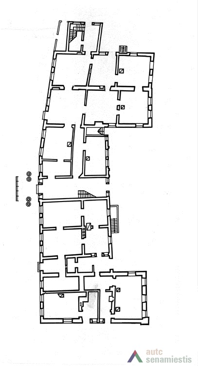 Tai viena iš kelių vietų Kauno senamiestyje, kuri atitinka naujai suplanuoto miesto sklypus su ankstyviausiu užstatymu. Kaip ir kitais atvejais, čia atrasti gerokai į žemę įgilinto pusrūsio pėdsakai su išlikusiais medinių grindų fragmentais[8]. Šie pėdsakai labai primena viduramžių miestų ankstyvajam statybų etapui būdingus pastatus su pusrūsiais, kur virš žemės paviršiaus iškeltas gyvenamasis aukštas apsaugojo nuo drėgmės. Pagal pastato radinius jis buvo datuotas XIV ir XV a. sandūros, ar XV a. pradžios laikotarpiu.