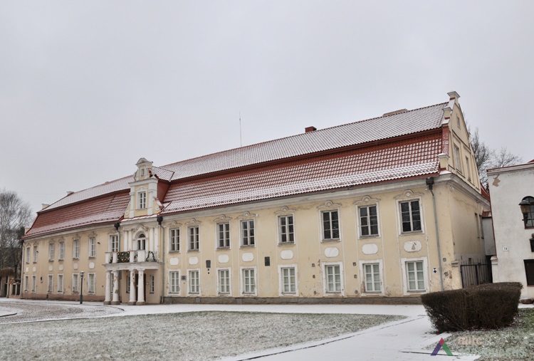 Manoma, kad šiuos rūmus, apjungdamas kelis anksčiau statytus miestiečių gyvenamuosius namus, XVII a. pastatė LDK kancleris Kristupas Pacas[1]. XVIII a. šią valdą įsigijo Kauno teismo seniūnas Simonas Sirutis ir rūmus perstatė. Tad jie kartais vadinami Siručio rūmais. Rūmai pastatyti ant keturių, spėjama, miestiečių posesijų – trijų 14,5-14,7 m pločio ir vienos 22-23 m[2]. Tokie duomenys rekonstruoti iš išlikusių rūsių pėdsakų[3]. Tyrimai rodo, kad šiaurinė rūmų pusė pastatyta pritaikant dviejų namų rūsius tarp kurių būta pravažiavimo. Pietinei rūmų daliai pritaikyti dviejų, vieno prie kito glaustų, namų rūsiai, turėję įėjimus iš skirtingų pusių[4]. Centre būta įvažiavimo į kiemą. Tuo metu valdoje stovėjo daug pagalbinių ūkinių pastatų – oficina, vežiminė, svirnas, arklidė. Matyt XVIII a. pabaigoje rūmai rekonstruoti, įvažiavimo vietoje įrengtas naujas klasicistinis įėjimas.