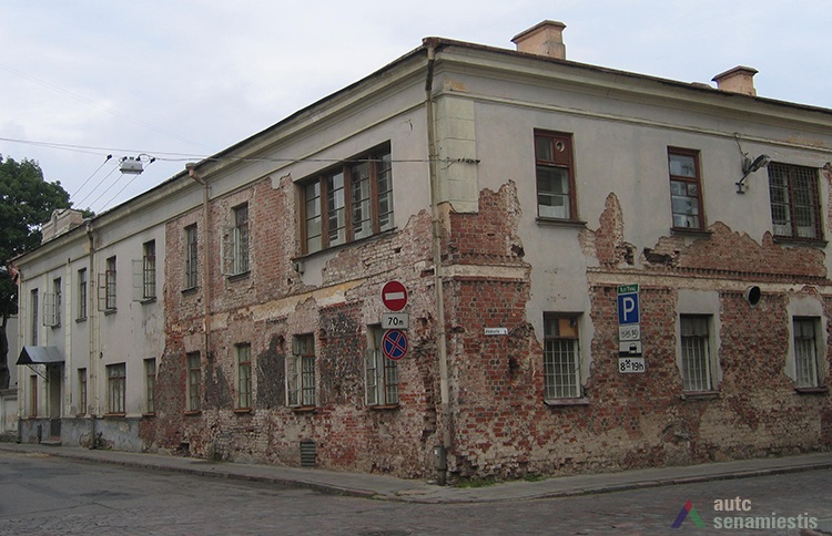 Žvalgybinių architektūrinių tyrimų metu[1] nustatyta, kad pirmajame statybos etape Aleksoto ir Muitinės gatvių kampe pastatytas mūrinis namas buvo vienaaukštis. Jo plotis prie Muitinės gatvės – apie 8,8 m, o ilgis prie Aleksoto gatvės – apie 24,60 m. Išlikusios namo dalies aukštis nuo dabartinio šaligatvio paviršiaus – apie 5 m arba 3 plytų eilės virš frizinės juostos. Sienos 1,0‑1,15 m storio, akmenų ir plytų mūro.